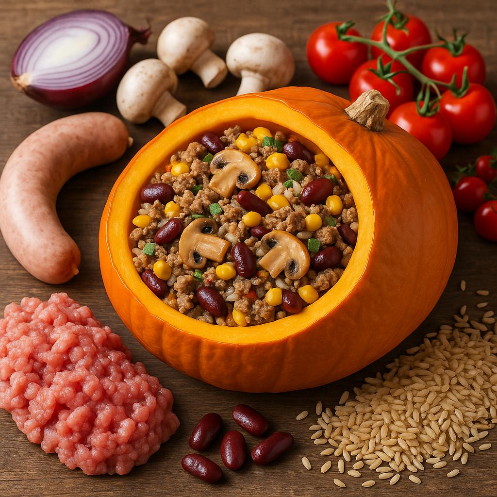 - Говядина и грибы: Используйте фарш из мелко нарезанной говядины и грибов, приправьте его специями по вашему вкусу и заполните тыкву.