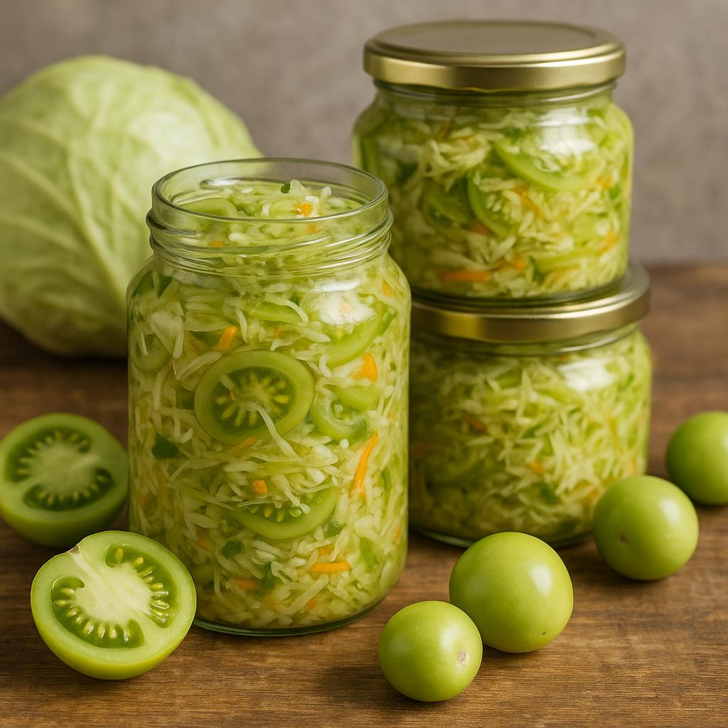 Салат из помидоров (зелёных) с капустой и томатным соком