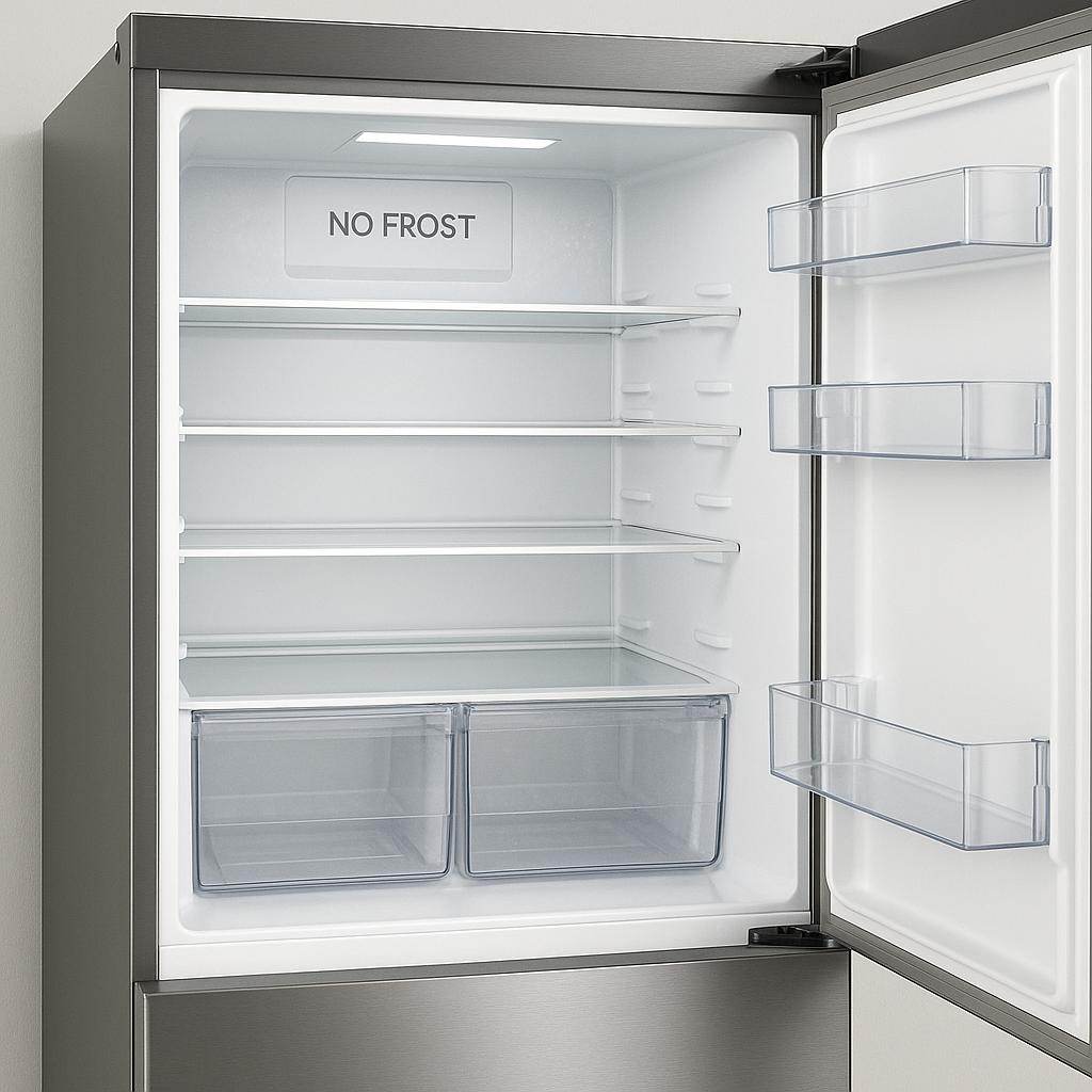 Во многих моделях нового поколения реализована система No Frost, избавляющая пользователя от ручной разморозки и мытья камер. Производители холодильного оборудования реализуют эту технологию по-разному. В некоторых агрегатах система No Frost находится только в морозильном отделении, а в некоторых — в обеих камерах. Авторазморозка может осуществляться за счет вихревых потоков воздуха или его многоуровневой подачи.