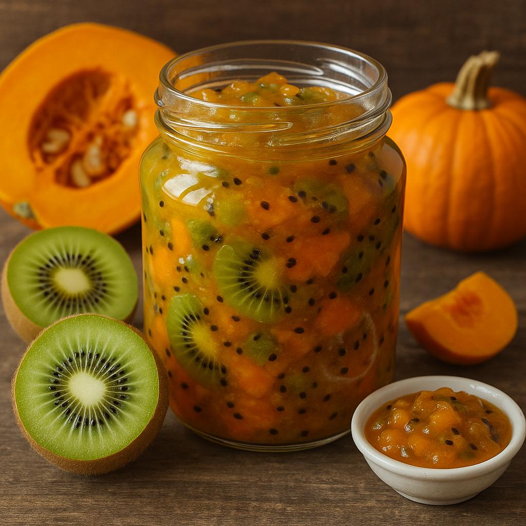 - Варенье из киви и тыквы готово к употреблению. Подавайте его с тостами, выпечкой или добавляйте в йогурт.